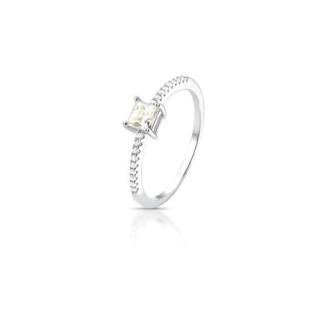 ✨ Anel com Pedra Moissanite Quadrada de 4 mm Branca Cravejado de Zircônias em Prata com Banho em Ródio ✨