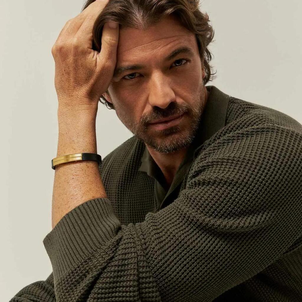 Esta pulseira combina couro legítimo com uma placa lisa em aço, criando um acessório elegante e autêntico. Perfeita para quem busca semi joias. 🌟